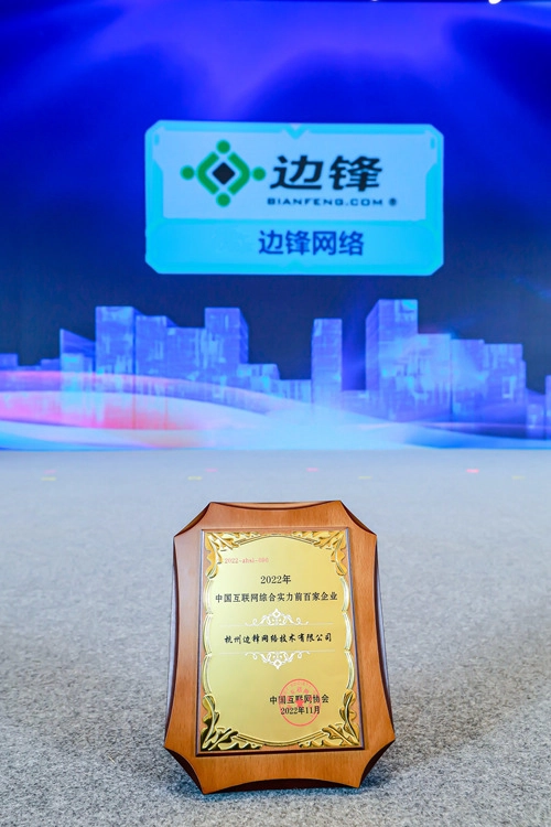 边锋网络荣获2022年中国互联网综合实力前百家企业称号