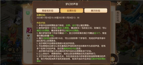 从11月16日开始,《梦幻西游》手游2022梦幻好声音的评选投票阶段即将开启!到时候,玩家们上传的所有作品都将参与全服范围内的评选。