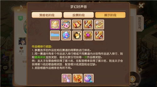 在投票阶段,玩家能给喜欢的声音投梦音符或送花来提升其票数。具体来说,玩家用一次梦音符能增加1点票数,送鲜花则可增加10到40点票数。梦音符可以通过积累每日活跃度或者完成好声音手册任务来获得哦!