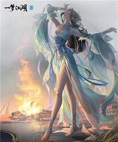 大漠沉沉的夜色被熊熊燃起的篝火点亮,以悬壶济世为己任的云梦第十七代掌门人谈妙言,在篝火旁翩然起舞。满天繁星作伴,炽热火光为衬,壮阔而美丽的夜景在她面前黯然失色。她步履轻盈,舞姿绰绰,仿佛在挥袖之间,为少侠们织就了一个浪漫的美梦。