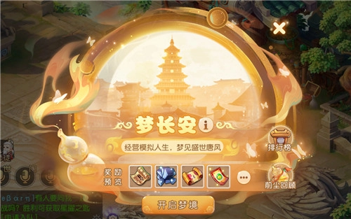 在全新推出的“梦长安”玩法里,玩家会化身为大唐盛世中的一名寻常孩童,通过从普通、稀有、传说三类天赋池里随机抽取出生天赋,为这段模拟人生打下基础。之后,玩家将经历拜师学艺、职业发展、休闲娱乐、经商盈利、房契投资、寻觅伴侣等丰富的人生历程,触发形形色色的奇遇事件,以此积累个人属性与财富,最终得到人生总评分以及相应的人生判词。
