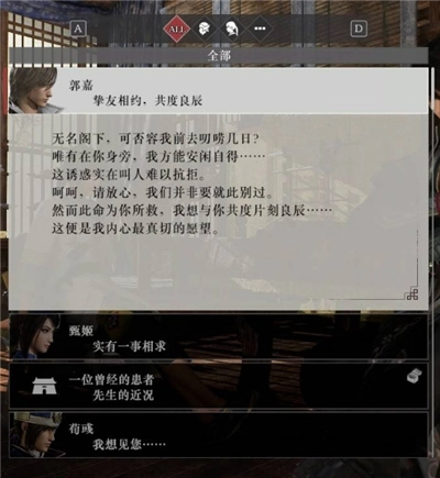 之后大部分事件都需要跟随曹操线的主线推进来提升情谊,解锁邺之战后前往豫州许都解锁事件,事件结束后对话会追加修炼内容。