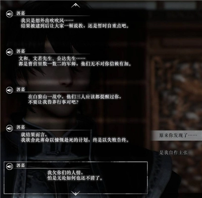 在赤壁之战开启之前,会触发一段和郭嘉的对话,郭嘉的提示内容是让主角在赤壁之战里选择郭嘉作为一同参战的武将。