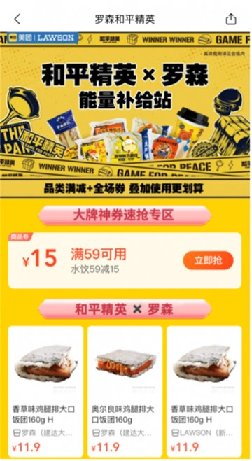 一连串的组合拳之下,“罗森&和平精英”关键词登上美团热搜榜第4位,刚上架的鲜食被一抢而空,不少吃鸡幸运鹅纷纷po出照片,引发大量关注讨论。