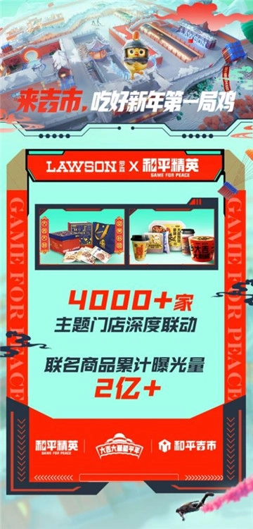 随处可见的蓝色空投箱,琳琅满目的“吃鸡”年货……兔年春节之际,和平吉市热闹开张,以线下便利店、线下商超等年货场景为接入点,携手罗森、盒马两大品牌,创造出「来吉市,吃好新年第一局鸡」的文化氛围,为众多玩家带来了一场情绪与产品深度融合的跨界“吃鸡”体验。