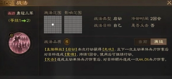 《三国志战棋版》作为一款气势恢宏的三国题材战棋游戏,以乱世三国为背景,融合了策略烧脑的战棋玩法。玩家将在此开启全新的招募与征战之旅,通过自由搭配英雄阵容,打造独特的出战组合。其中,“勇冠三军”是S级自带战法,具备强大的技能效果。为了让大家更直观地了解该战法,小编特意准备了其效果属性图,感兴趣的玩家不妨跟随小编一起,深入了解这篇关于《三国志战棋版》“勇冠三军”战法的详细介绍。