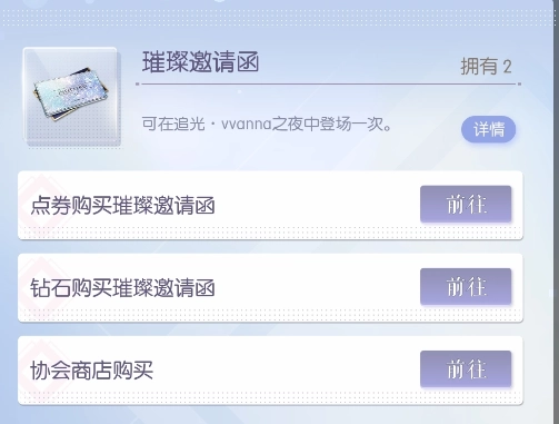 挚爱/真爱追光玩法需消耗璀璨邀请函,可通过协会商店兑换、钻石购买或点券购买获取。