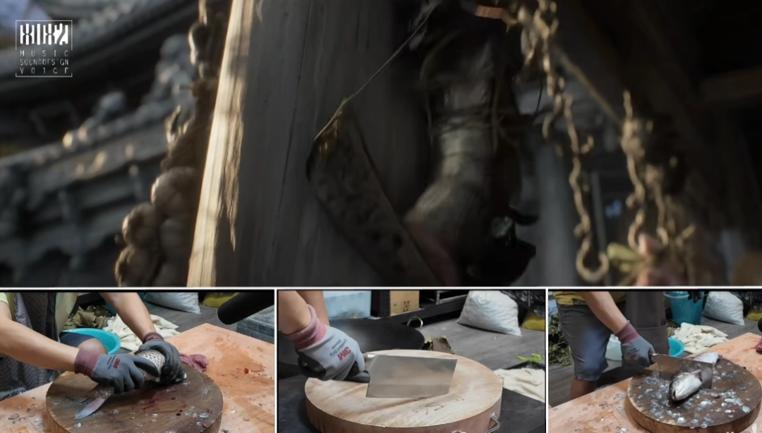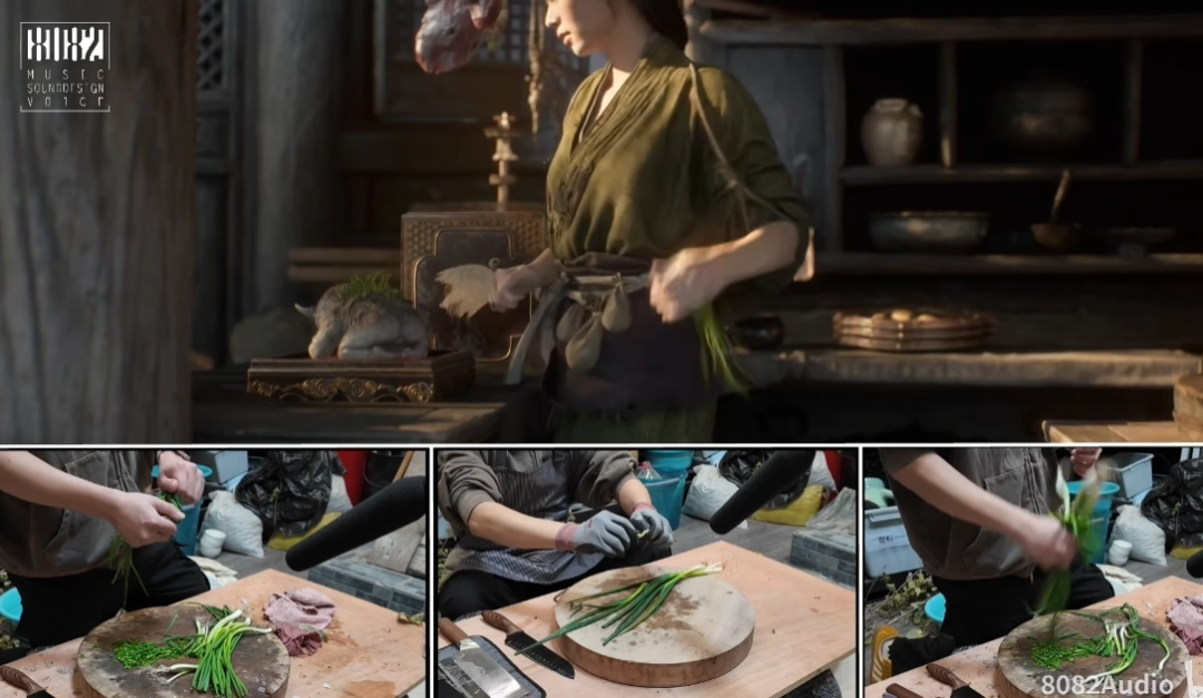 从幕后花絮视频中能看到,为了呈现出真实且诱人的美食效果,拟音团队没有依赖数字合成技术,而是采用了真材实料的传统拟音方法——使用真实的食材、还原真实的烹饪过程,借助精细的拾音技术,把煎、炒、烹、炸等烹饪环节的声色细节逐一捕捉下来,最终与动画画面实现了完美融合。这种“用真实食材搭配真实声音”的创作方式,让短片里的每一道菜肴都显得格外鲜活且诱人。