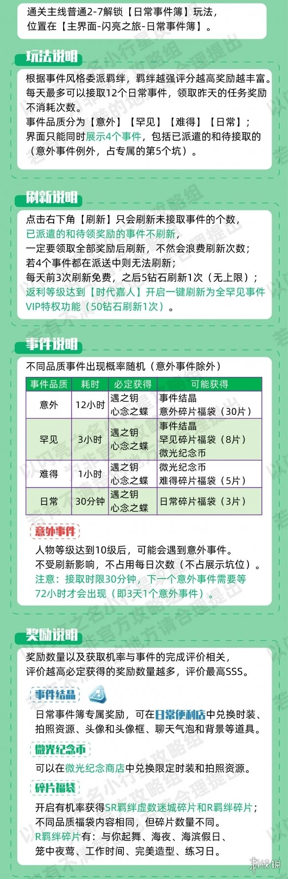 通关主线普通2-7关卡后,即可解锁【日常事件簿】玩法,该玩法的入口位于【主界面-闪亮之旅-日常事件簿】。