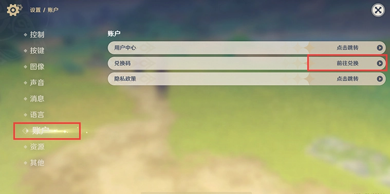 5、选择账户,找到兑换码选项,点击兑换按钮。