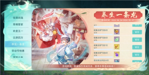 活动期间,参与养生一条龙活动可获得管家活力值。前往【草精管家】活动页面,消耗管家活力值即可雇佣小草精,完成烽火战令等日常活动和草精广场舞等限时活动!每个活动消耗的管家活力值和所需时长不同,请合理安排时间。此外,每日0点将重置所有打工点,已完成但未领取的活动奖励会自动发放至背包。