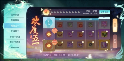 4月24日至5月7日期间,五一专属通行证福利活动正式启动。此次活动设置了三个参与档位,分别是免费福利档位、金玉档位与亨通档位。玩家通过完成活动指定任务,能够积累经验值并解锁对应等级的奖励。其中,解锁金玉战令并提升等级,可获得300元宝、四级宝石袋等奖励;解锁亨通战令并提升等级,则能领取680元宝、元魂通天·启等奖励。值得一提的是,若同时购买金玉战令和亨通战令,还可额外获赠四级自选宝石、100绑定元宝等珍稀好礼。