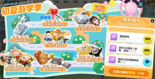蛋仔岛游学之旅马上就要开始啦,为蛋仔们准备的游学大礼包已经妥妥安排好,足足60个彩虹币可以免费拿哦!从4月30日到5月16日,“初夏游学季”的集合任务正热热闹闹地进行着,每天完成指定任务,就能累计领到42枚彩虹币呢!狂欢星期六连续三周都不停歇,除了面饰“乌云闪电眼镜”、动作“猜猜舞”“比划两下”这些超棒的奖励外,还有18枚彩虹币的惊喜福利等着大家!