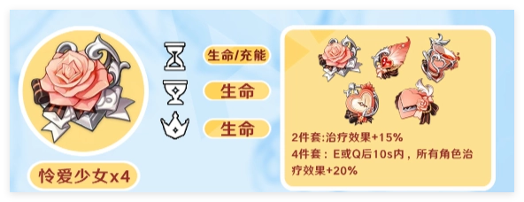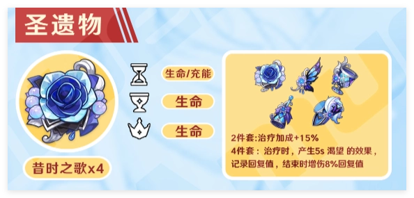 希格雯的核心养成思路是主堆生命之契,以此来提升自身的伤害输出以及治疗增益效果;适配她的圣遗物选择范围也比较广泛。