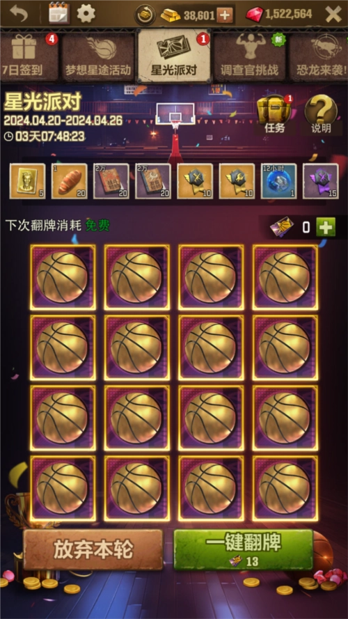 5月13日至5月19日期间,全服将上线【星光派对】活动。玩家可通过完成每日任务、消耗钻石、付费购买、免费领取(每24小时刷新一次)等途径获取活动入场券。