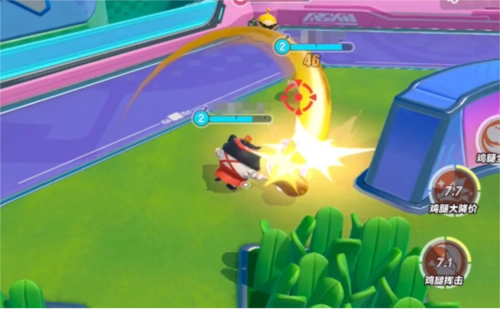 施展一技能“鸡腿挥击”,元气丸子将抡起鸡腿旋转一圈,然后重重砸下,击飞命中的敌人!