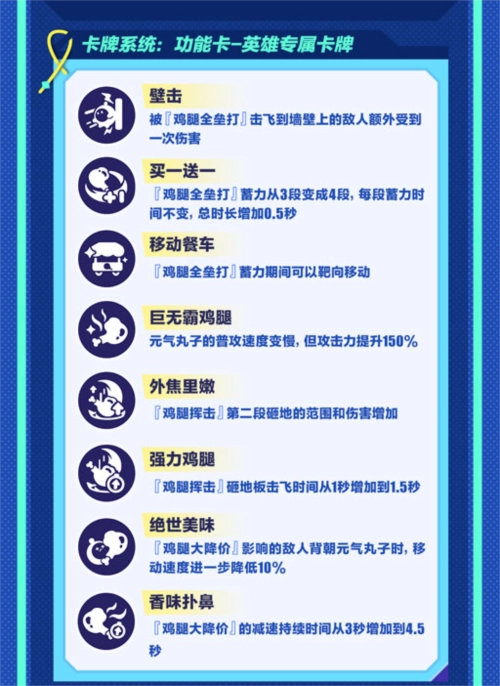 超燃蛋仔“元气丸子”的专属卡牌也同步上线啦。在实战时,蛋仔们能借助卡牌的选择组合出不一样的战斗流派。要是选“强力鸡腿”,就能大幅增加控制时长,再搭配伤害强化类的卡牌,一套流畅的连招就能让敌人遗憾出局;或者选择“买一送一”,把终极技能的伤害提升到最大,凭借满蓄力的爆发伤害将敌人一下击败。