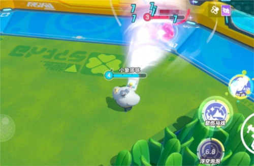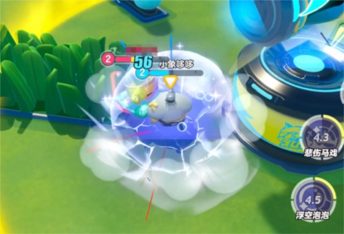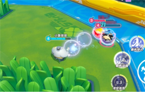 施展一技能“浮空泡泡”,流浪小象哆哆使用泡泡枪射出多个泡泡,对命中的敌人造成3秒「浮空」;当处于「浮空」状态下的敌人受到攻击,泡泡将破裂并额外造成一段伤害。