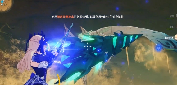 1、首先得带上冰、火、水、雷这四种不同元素的弓箭手,一起到沙虫所在的位置。等风虫释放大招时,它周围会出现不少风球,这时候我们用这四种不同元素的攻击去打这些风球,就能完成这个成就。