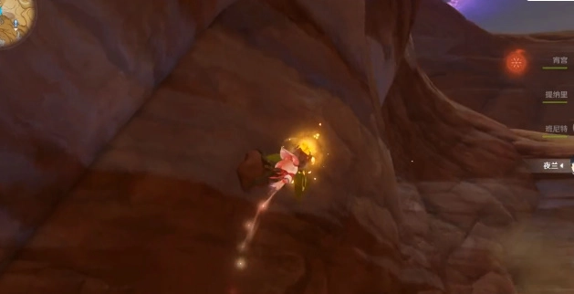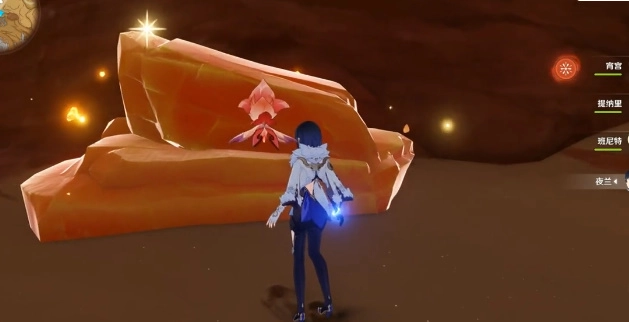 3、沙漠里看到的这种琥珀石,实际上是个宝箱,我们可以借助斯露莎来吸取附近苦离果的能量。