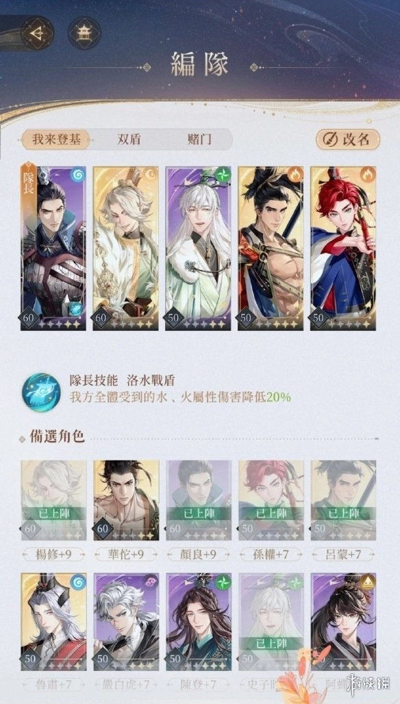 1、颜良,杨修(开局获得+2效果,技能有所提升),狮子喵(释放技能时触发防御效果),吕蒙(两星状态),孙权(处于防御状态时触发嘲讽,同时在防御时进行回血或叠加护盾)。