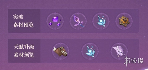 70级突破所需材料:最胜紫晶块6个、符纹之齿12个、鸣草45个、浮游晶化核12个,以及摩拉10万。