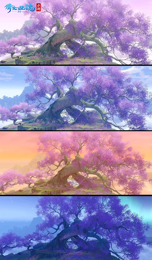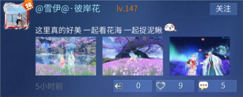 有的小伙伴会在落霞峰上分享自己与侠侣携手赏花的日常,也有小伙伴会在新区里与好友一梦醒来,“重生”在落霞峰上。