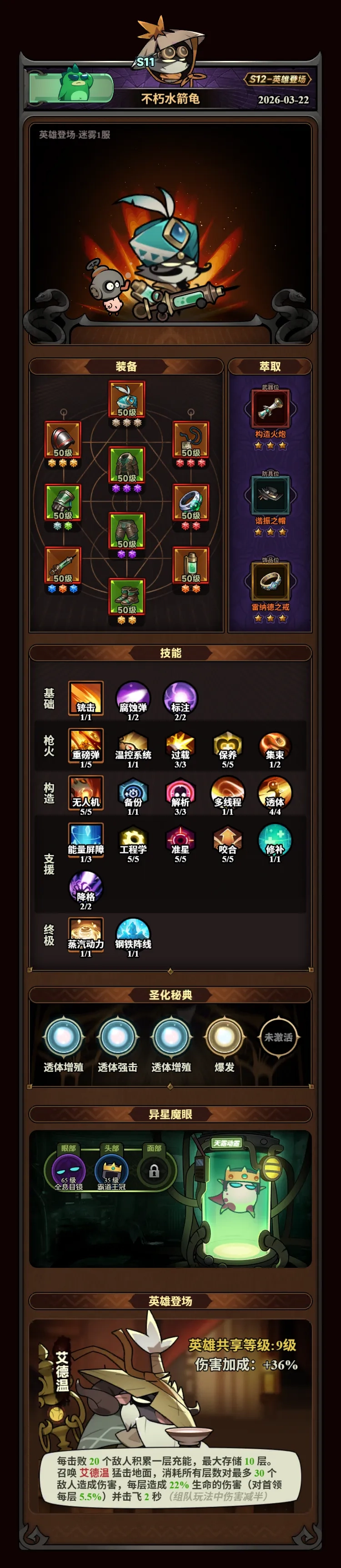 3、技能方面只需点出保养和修补就行,要是有回血翅膀或者赛季翅膀可以带上,没有也不影响,实际测试下来完全能扛住。