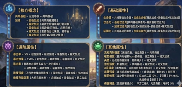 要算明白属性,先得搞清楚共鸣基础是什么。这是所有属性的地基,等于你的元流等级加上共鸣突破提供的数值。地基越高,后面的加成越明显。