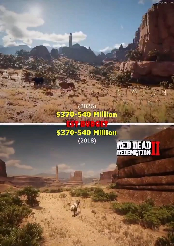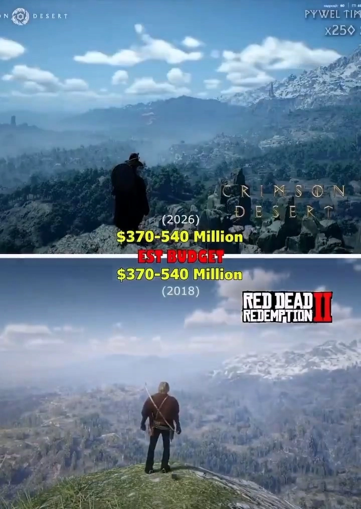在第二个视频里,他对《红色沙漠》的开放世界展开了对比,发现其中部分场景的设计与《荒野大镖客2》存在高度相似之处。