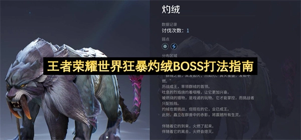 狂暴灼绒是《王者荣耀世界》里节奏比较快的野外BOSS,它的整体攻击频率高,不过机制很清晰。战斗的难点主要在后半段的护盾阶段以及对范围技能的应对上。接下来小编就为大家分享王者荣耀世界狂暴灼绒BOSS的打法指南。
