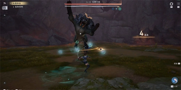 BOSS会突然做出跳远动作,接着用尾巴敲击地面两次,随后便会发动红光攻击——它会快速侧身朝玩家方向冲刺并发起撞击。不过这个攻击的前摇十分明显,很容易通过完美闪避躲开,之后还能衔接强化普攻。接下来只要用常规连招将BOSS的血条打空,就能结束这场战斗了。