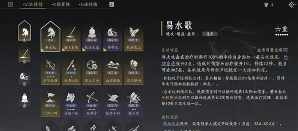 6、这样操作,既能确保易水歌始终保持六重以满足日常使用需求,又能以最快速度培养多套流派金心法,确实非常实用。