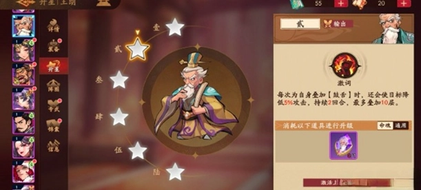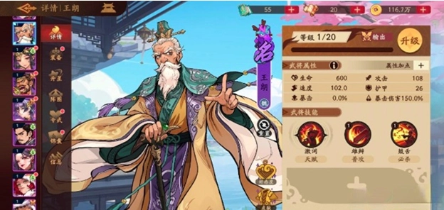 王朗在三国杀武将觉醒系统里是紫色品质的输出型武将。紫色品质在游戏中属于中高阶定位,尽管品质不是最顶尖的,但作为输出武将,他的整体属性处于中等偏上的水准。他的技能机制很有特色,必杀技能够对敌方目标造成较强的伤害,而且每次命中后都有一定概率附加“鼓舌”效果;要是进攻没命中,就会给自己叠加一层“饶舌”状态。这两个状态是王朗的核心特性,要是能和其他武将的技能相互配合,就能发挥出更强大的战斗效果。