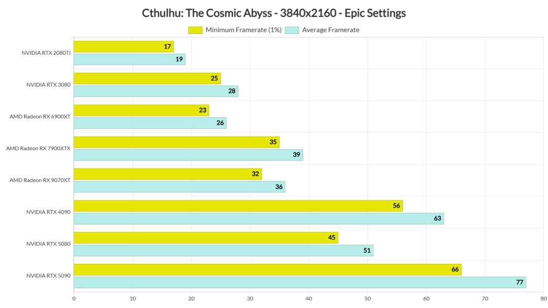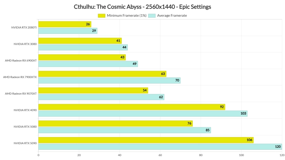 值得留意的是,《克苏鲁:恐怖深渊》在RDNA 4 GPU上的运行表现不算出色,至少现阶段是这样。Radeon RX 9070XT的性能明显比不上Radeon RX 7900XTX。外媒推测,新驱动程序推出后,性能应该会有较大幅度的提升。不过就目前情况来看,RDNA4 GPU的用户还没办法享受到最理想的游戏体验。