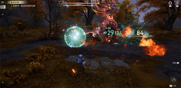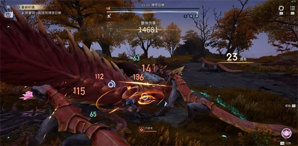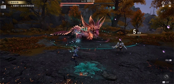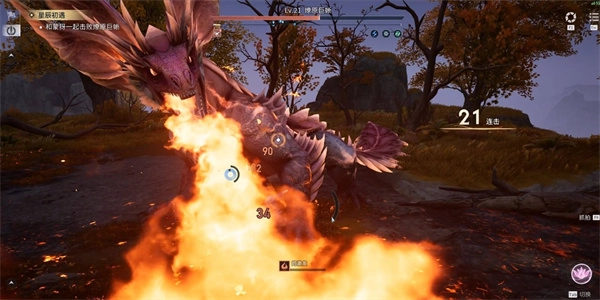 燎原巨蜥会时不时朝前方扇形区域喷火,还会用尾巴多次拍打角色所在位置的地面,连续完美闪避就能躲开这些攻击。