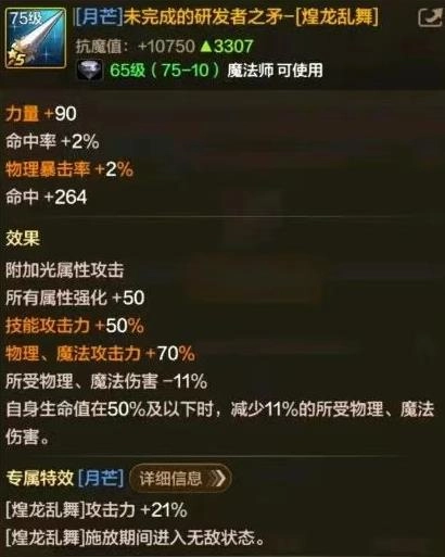 6、武器方面推荐月芒未完成的研发者之矛,选择它的原因在于其自带光属性攻击,并且拥有高额减伤效果,配合觉醒变身的特性后,能显著提高在高难度副本中的容错率。装备则建议搭配冰川之梦套装,这套装备的优势是可以提供大量速度属性加成,而战斗法师作为对攻速需求较高的职业,充足的攻速不仅能缩短技能释放时的动作时长,还能更高效地生成炫纹,进而提升整体输出能力。