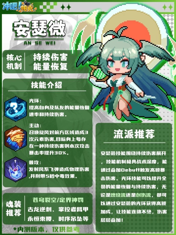 《冲吧!帕克》里的安瑟薇是围绕持续伤害体系设计的宠物,核心机制靠中毒和多种Debuff叠加来增加暴击率与整体输出能力。在燃烧流或创伤流队伍中,她主要负责辅助输出和为团队提供增益效果。接下来小编就为大家分享冲吧帕克宠物安瑟薇的技能流派玩法攻略。