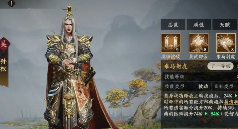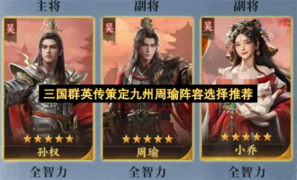 这套阵容的主将选的是孙权,另外两名武将担任副将;由于是纯吴国阵容,还能触发相应的羁绊效果。后期培养这三位武将时需要注意,通常要给他们全加智力点,这样才能在吴国体系里充分发挥他们的基础属性优势。孙权的核心能力是施加易伤状态,这个状态能否成功挂上,直接关系到前期能否建立优势——一旦易伤生效,就能提升当前智力最高的队友的伤害技能效果。这也是为什么之前建议给阵容里的武将都加智力点;如果主要靠周瑜的燃烧效果打输出,就要利用孙权的这个特性,让周瑜的智力加点比孙权和小乔都高一些,这样才能让周瑜的攻击力获得最大幅度的提升。