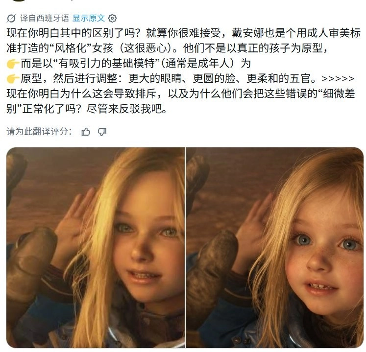 这自然引发了玩家群体的强烈不满。玩家们提出质疑:这名用户此前发布的2万条帖子里,几乎找不到任何与游戏、卡普空或《识质存在》相关的内容,为何偏偏在游戏发售之际突然发布这样一条帖子?针对帖子里的说法,玩家们还拿出不少证据来证明戴安娜的脸没问题:一是戴安娜本身是机器人,二是10岁左右的儿童完全可能长这样的脸。更让人生疑的是,这名用户面对批评和反驳时,只会进行人身攻击和辱骂,这不由得让人猜测他的身份或许和DEI或女拳组织有关。
