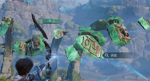 4、第四个机关位于密林巨骨区域,抵达该地点后,需寻找黄色标靶,随后使用石头或其他道具攻击以激活机关。此机关需要玩家击中周围的标靶才能持续上升,当上升至最高点时即完成机关触发,此时与机关互动即可获取机关灯芯。在上升过程中会有怪物出现,需注意避免坠落。