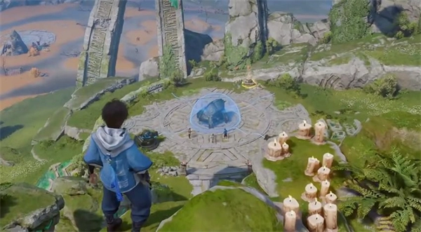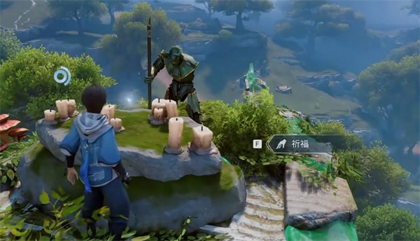 9、获取龙骨碎片后不要离开,继续顺着漂浮的石板往前走,会碰到青铜人偶,和青铜人偶互动就能解锁祈福点,总共要找四个祈福点,等四个祈福点都完成后,前往中间位置就能得到第二个龙骨碎片。