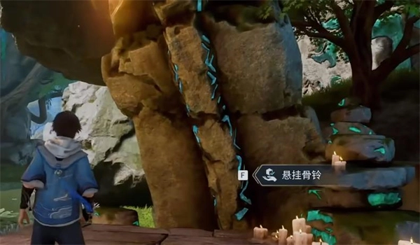 11、集齐三块碎片后返回寻找央铃,完成对话即可得到一个骨铃,随后悬挂骨铃会启动中间的试炼,试炼结束意味着第二阶段任务完成。完成后与中间发光的石碑进行互动,就能开启最后阶段的任务。