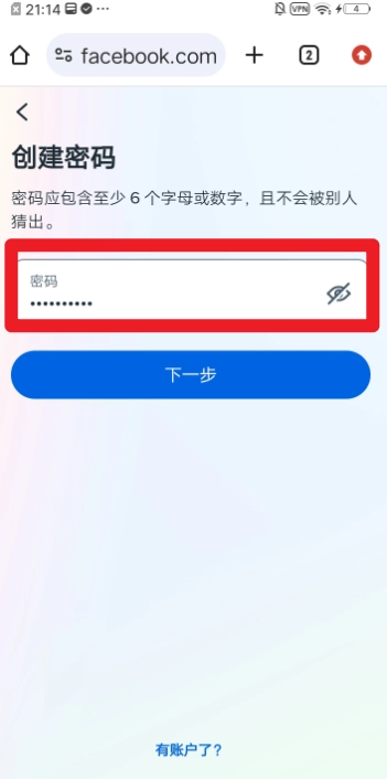 7、接下来设置账号密码,要求至少包含6位字母或数字。