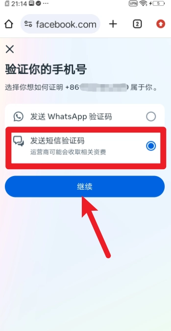 9、可选择通过WhatsApp或短信接收验证码,以此完成安全验证环节。