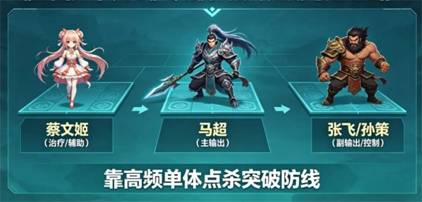 1、马超追击阵容(极致单体爆发):马超(核心输出)+ 蔡文姬(治疗辅助)+ 张飞/孙策(副输出兼控制)。