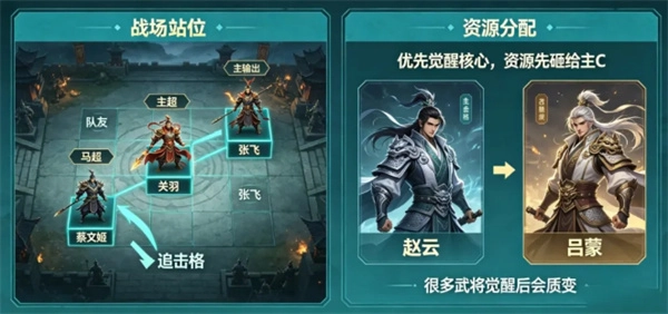 2、优先觉醒核心:资源先砸给主C,很多武将觉醒后会质变(如赵云、吕蒙)。