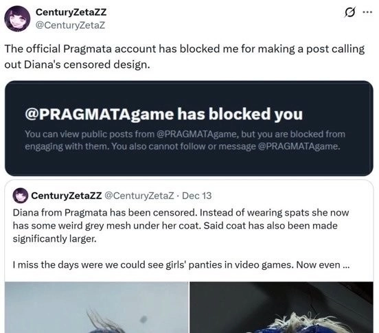 这名用户表示:“《识质存在》里的戴安娜被调整过了。她原本穿的是打底裤,现在外套下面多了层奇怪的灰色网眼布料,外套也做得更宽大了。我挺怀念以前能在游戏里看到女孩内裤的时光,现在连……”这番言论引发了网友们的一致反感,大家觉得对角色形象只关注隐私部位的行为很恶心,认为这种人应该被“人道毁灭”。