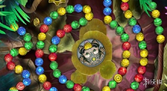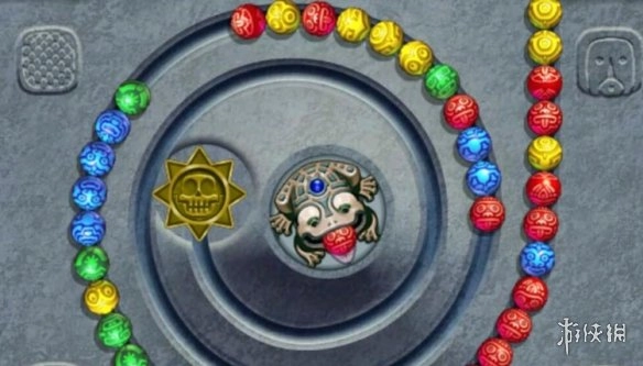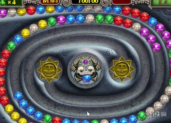 核心玩法:控制石蛙发射彩球,匹配3个同色消除,阻止彩球滚入终点骷髅头