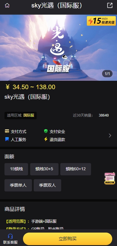 sky光遇国际服的公测时间比国服早了几个月,因此更新节奏也相对更快,玩家在这里能体验到国服尚未上线的新玩法。和国服相比,国际服支持中文、英语、日语、韩语等多种语言,能满足不同用户的游玩需求。不过游戏里不少物品需要付费购买,玩家可以选择自行充值或通过第三方渠道充值,但海外游戏的充值流程通常比较繁琐,不仅需要国外手机号、信用卡等条件,还得借助梯子才能登录,这些限制让很多玩家难以快速完成sky光遇国际服的充值,所以本站建议大家使用下方的代充平台来进行充值。